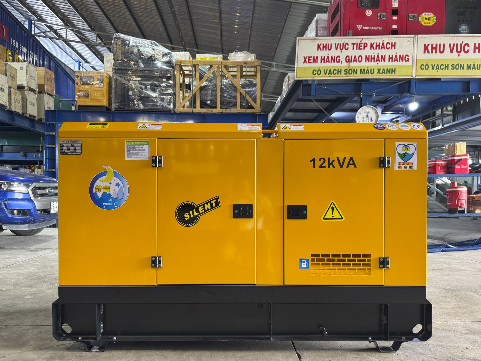 Đối với những máy phát điện 12kW đặt ngoài trời, cần có mái che hoặc vỏ chống ồn – chống mưa để bảo vệ thiết bị.