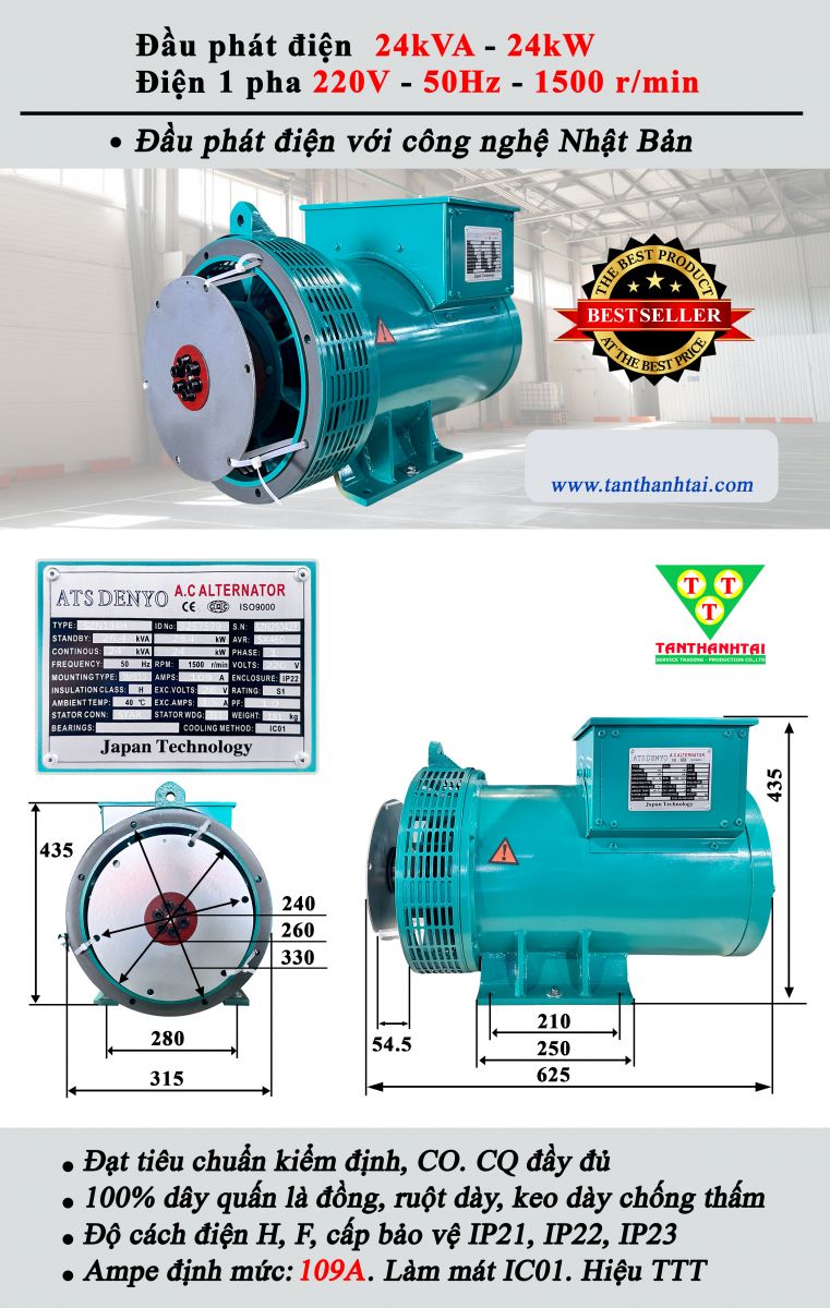 ♦ Công suất: 24kw - 24kVA