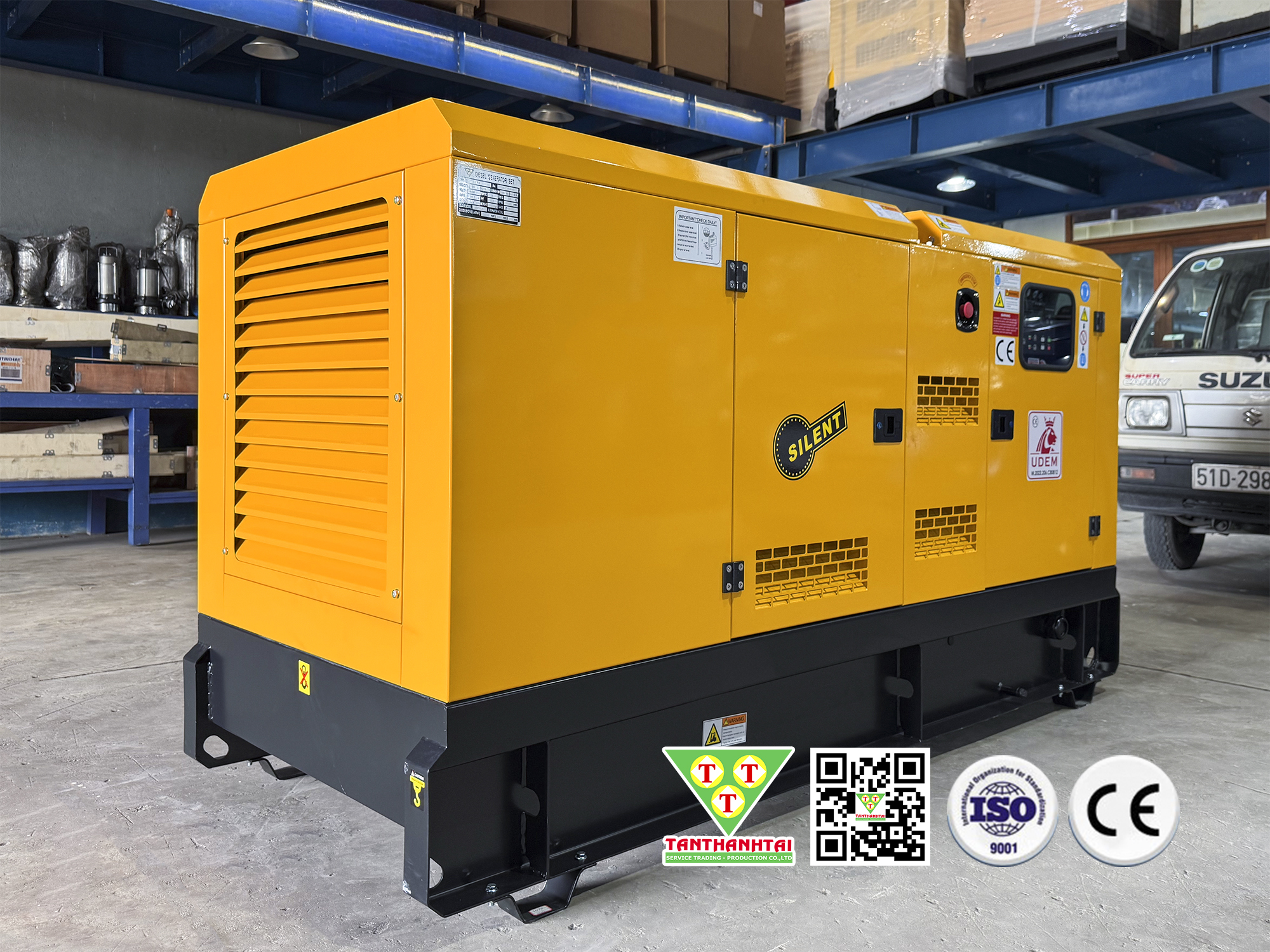 Máy phát điện Isuzu 50kVA, 3 pha được nhập khẩu nguyên chiếc đầy đủ phụ kiện kèm theo máy. Cùng vỏ siêu chống ồn đồng bộ nguyên chiếc, với thiết kế đẹp nhất và cách âm tốt nhất. Các thiết bị được sản xuất bởi các thương hiệu G7, tạo ra dòng sản phẩm bền bỉ và an toàn.