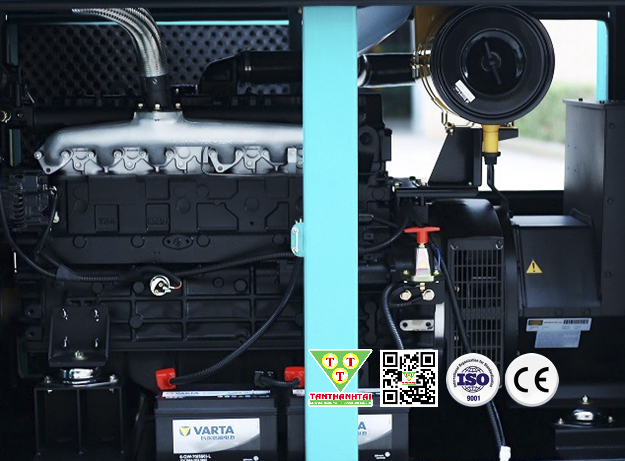 | Động cơ diesel được trang bị đầy đủ các thiết bị phụ sau: | + Bộ cao su giảm chấn + Bộ lọc gió + Ống góp gió vào + Ống thoát + Bơm nước tuần hoàn + Bộ lọc nước và chất chóng ăn mòn + Bơm dầu làm trơn + Máy nạp ắc-qui 12VDC + Động cơ khởi động 12VDC + Bộ tản nhiệt và quạt |