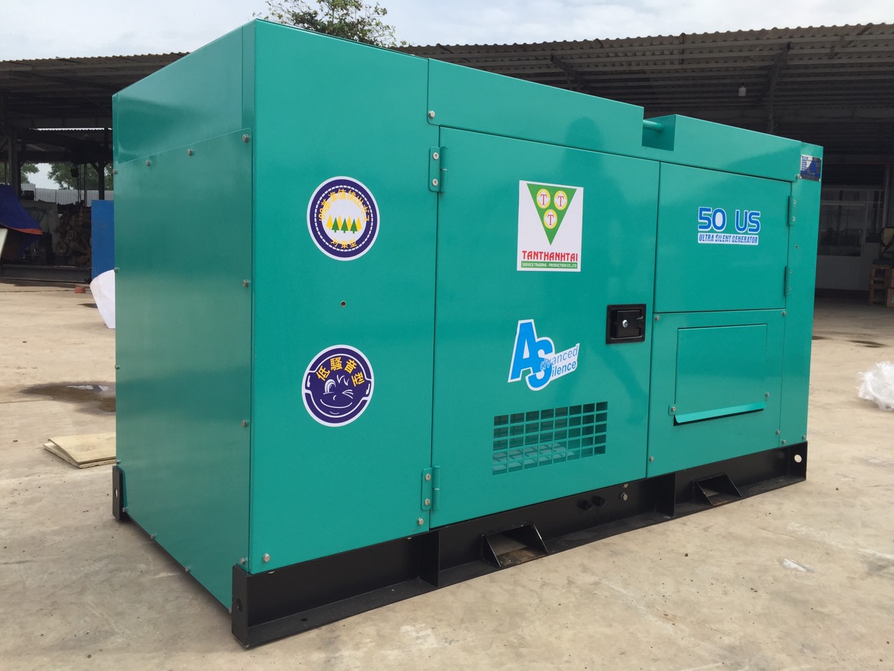 Máy phát điện thùng cách âm ( Tiêu âm, tiêu khói ) với ống Pô giảm thanh